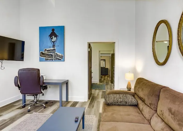 Disfruta de tus vacaciones en Nueva Orleans en el Apartamento Bywater Beauty Near Music And Fun Nueva Orleans. Ideal para quienes buscan una experiencia auténtica, está situado a unos 10 minutos en coche del Museo Nacional de la Segunda Guerra Mundial y a 3 km de la Plaza Jackson. El apartamento de 102 m², situado al lado de Solo Espresso, ofrece un patio donde los huéspedes pueden relajarse y disfrutar de las vistas de la calle.